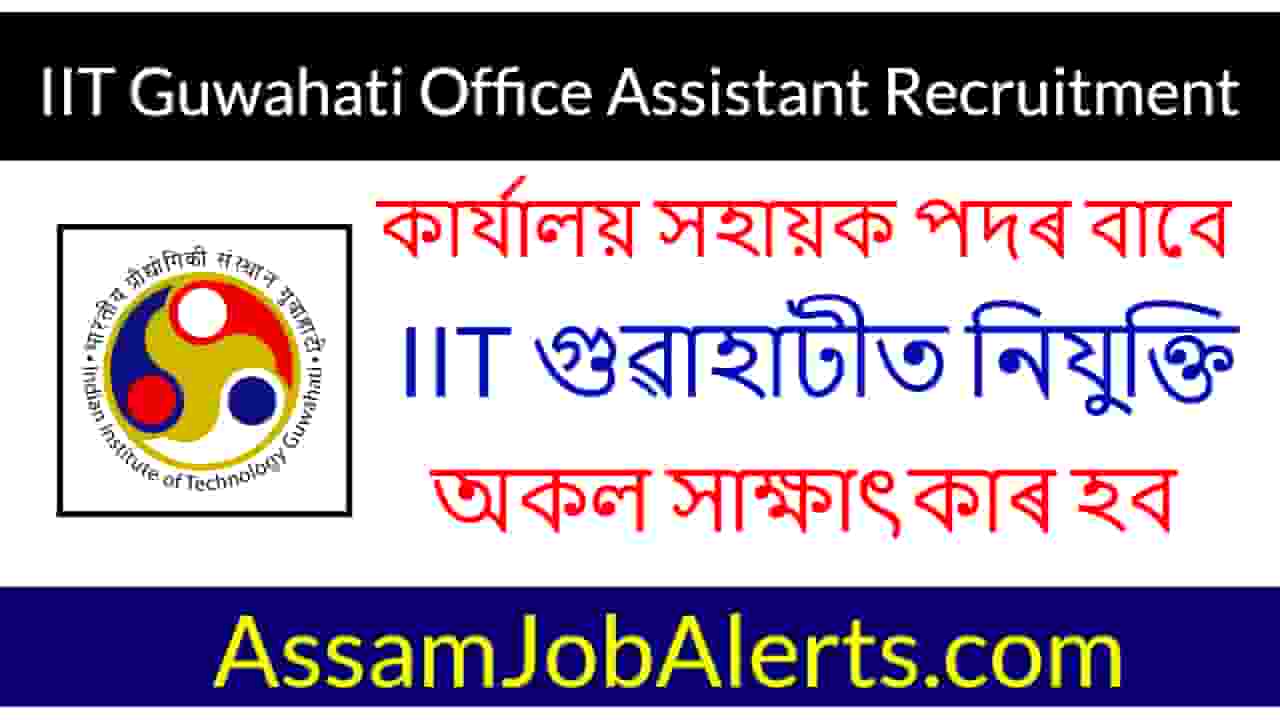 Applications are invited Indian Institute of Technology (IIT) Guwahati for an online interview on 21.09.2021 (Tuesday) at 10:00 am for the temporary contractual position of Office Assistant (Project mode) in the Research & Development Section of IIT Guwahati.