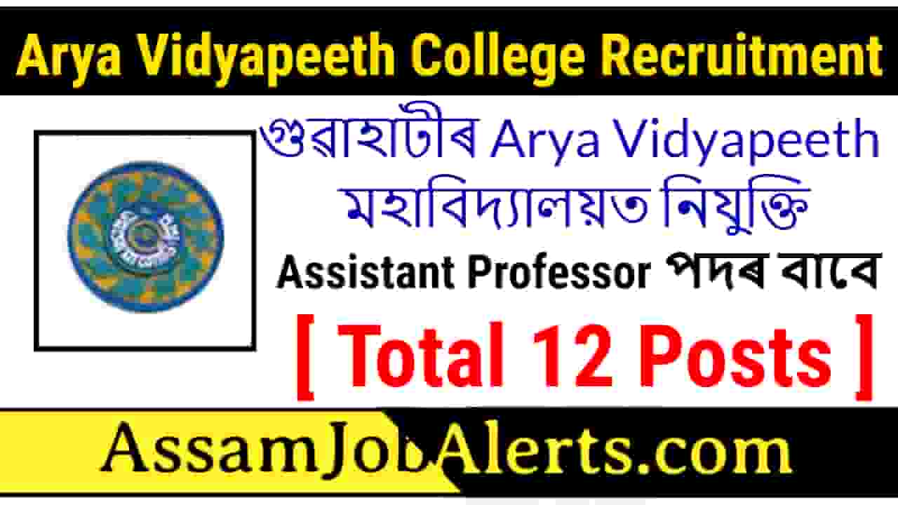 Arya Vidyapeeth College, Guwahati invites application from eligible candidates for the post of Assistant Professor in various departments. Interested candidates have to fill up the applications in prescribed format available in DHE website along with all supporting documents are invited for the post of Assistant Professors in the following subjects as per latest UGC norms.