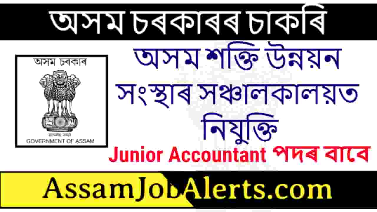 Assam Energy Development Agency, Bigyan Bhawan, G. S. Road, Guwahati has invited application in Standard Form along with all relevant testimonials (i.e., self-attested photocopies from HSLC onwards, Age Proof and experience certificate (if any) and 2 copies of passport size photographs) from eligible candidates for filling up of temporary post of Junior Accountant (one) on contractual basis.