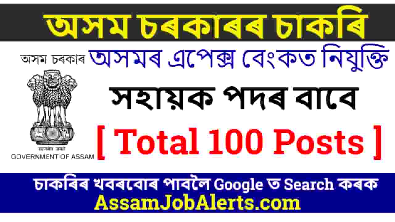 The Assam Co-operative Apex Bank Ltd. has published a recruitment notification regarding recruitment of 100 Assistant Posts. Assam Apex Bank invites application for recruitment for the post of Assistant in the Bank to augment staff strength and to drive the business of the Bank.