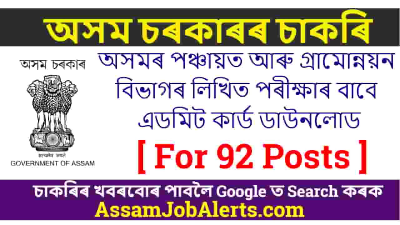 PNRD Assam Admit Card 2022 – For 92 Posts