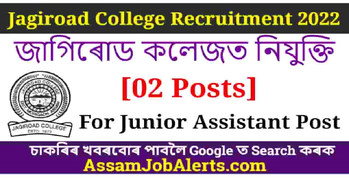 Jagiroad College Recruitment : Jagiroad College has published a recruitment notification regarding recruitment of 02 Junior Assistant posts. Applications are invited along with complete Bio-data and self-attested copies of all the testimonials from HSLC onwards for recruitment of the vacant Posts of Junior Assistant.