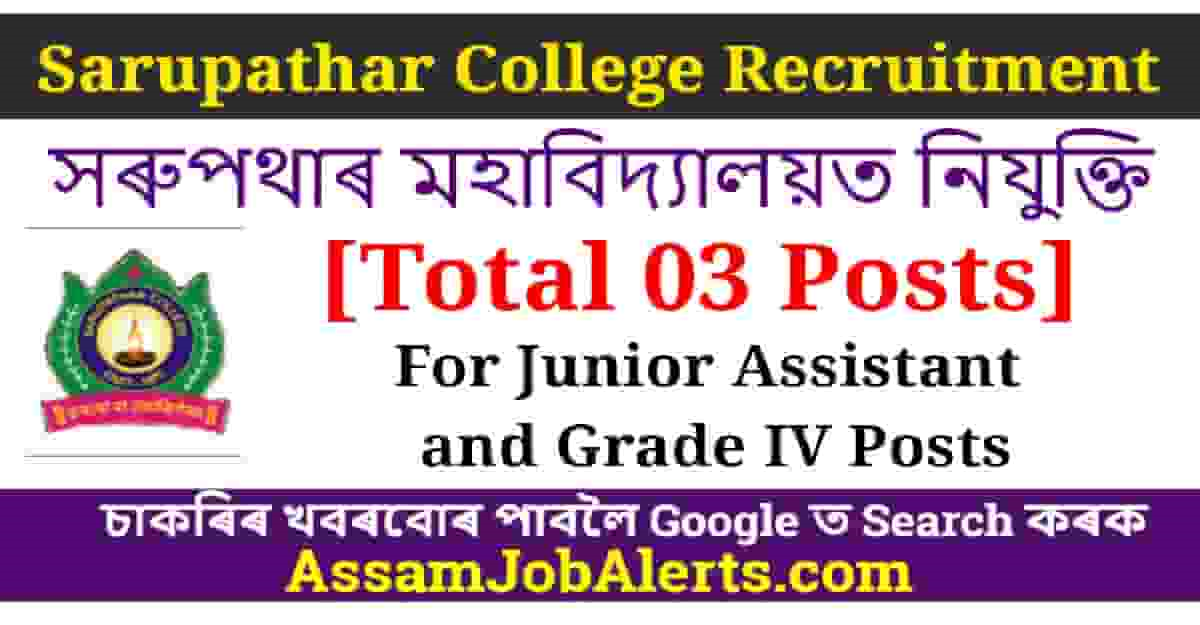 • Sarupathar College Recruitment - For 03 Junior Assistant and Grade IV - Assam Job Alert