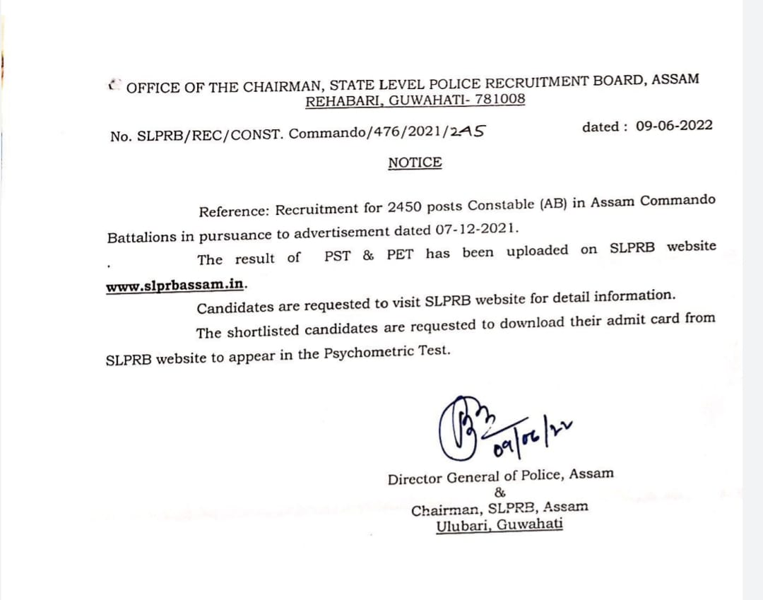 • Assam Police Commando Battalion Result 2022 | For 2,450 Posts - Assam Job Alert
