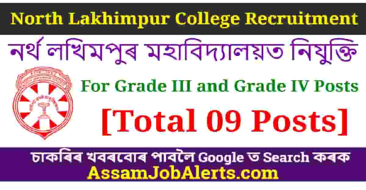 North Lakhimpur College Recruitment : North Lakhimpur College, Khelmati, North Lakhimpur has published a recruitment notification regarding recruitment of 09 Grade-III(Junior Assistant, Laboratory Assistant) and Grade–IV(Laboratory Bearer/Library Bearer) posts. Applications are invited along with complete Bio-data and self-attested copies of all the testimonials for recruitment of the vacant Posts of Grade III and Grade IV posts.