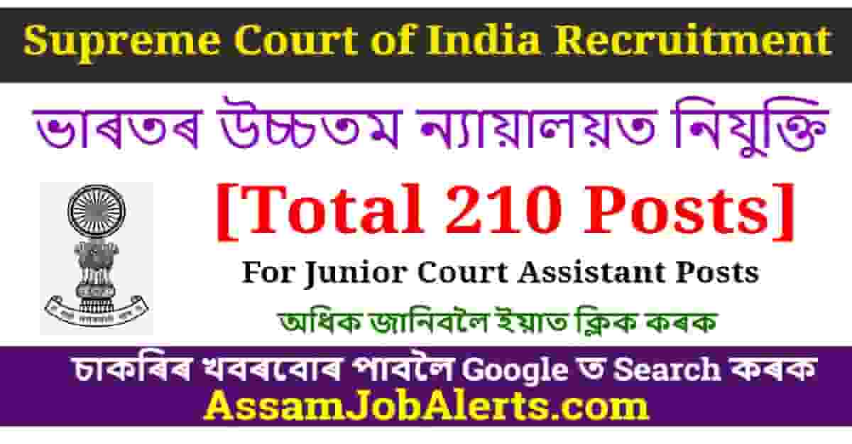 SCI Junior Court Assistant Recruitment : The Supreme Court of India has published a recruitment notification regarding recruitment of 210 Junior Court Assistant (JCA) Posts. The detail notification of Supreme Court of India Recruitment for Junior Court Assistant has been given below. Interested and eligible candidates may check the detail notification given below. For more recent Assam Job Notifications Please Visit Assam Job Alert Regularly.