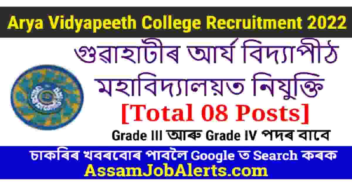 Arya Vidyapeeth College, Guwahati has published a recruitment notification regarding recruitment of 08 Junior Assistant, Laboratory Assistant, Library Assistant, Library Bearer, Laboratory Bearer and Grade IV Posts. Applications are invited along with complete Bio-data and self-attested copies of all the testimonials for recruitment of the vacant Posts of Grade III and Grade IV. For more Assam Job Notifications Please Visit Assam Job Alert Regularly.