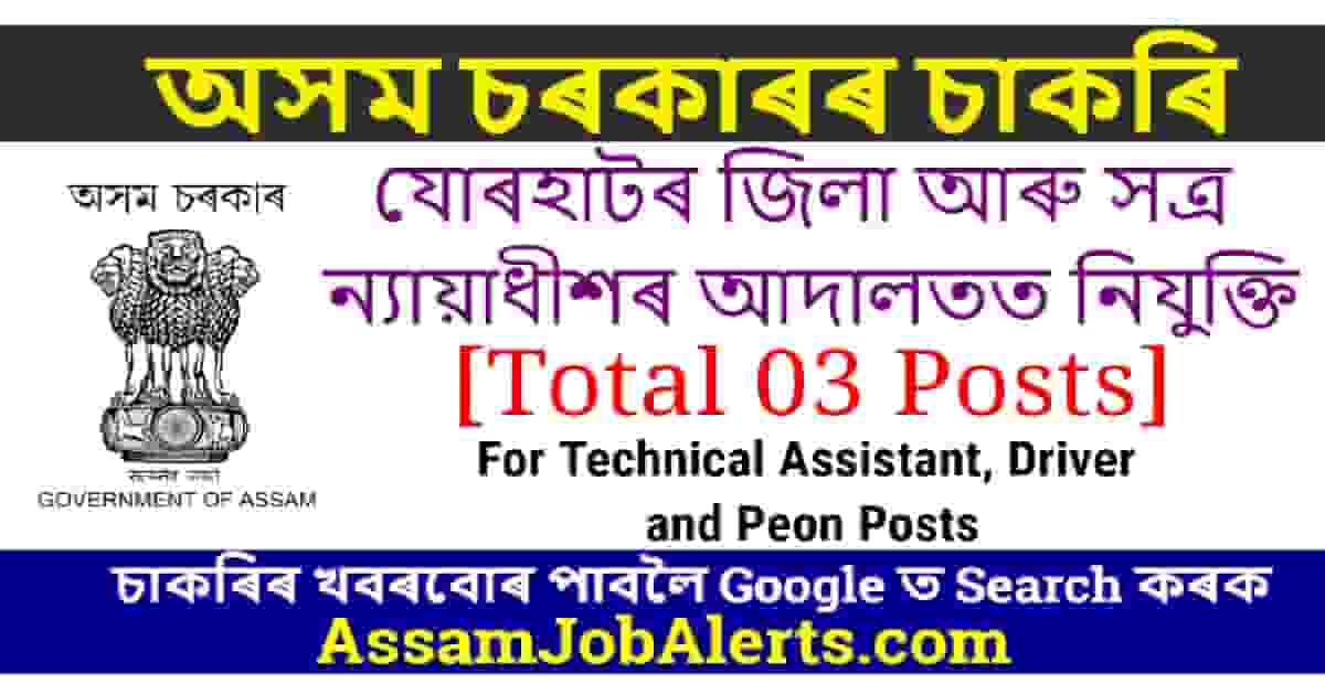 The District & Session Judge, Jorhat has published a recruitment notification regarding recruitment of 03 Technical Assistant, Driver and office Peon Posts. Applications are invited in Standard Form from intending candidates for filling up the following vacant post for ePOCSO Court, on contractual basis. For more job and educational notification please check Assam Job Alert Regularly.