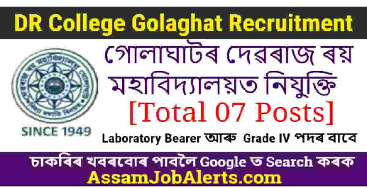 The Debraj Roy(DR) College, Golaghat has published a recruitment notification regarding recruitment of 07 Laboratory Bearer and Grade IV Posts. Applications are invited from eligible candidates along with Bio data and self-attested copies of all the testimonials for recruitment of the vacant Posts. For more Assam Job Notifications Please Visit Assam Job Alert Regularly.