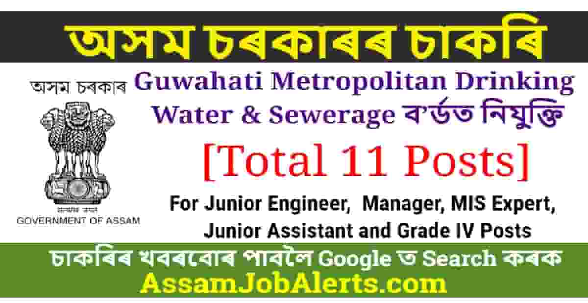 The Guwahati Metropolitan Drinking Water & Sewerage Board(GMDWSB) responsible for Water Supply & Sewerage services to the residents of the Guwahati Metropolitan Area (GMA) has published a recruitment notification regarding 11 vacant posts of Sewerage Engineer, Junior Engineer-Sewerage, Instrumentation Engineer, Service Connection Manager, MIS Expert, Junior Administrative Assistant and Grade IV. Interested candidates may check the detail notification as given below. For more Assam Job Notifications Please Visit Assam Job Alert Regularly.