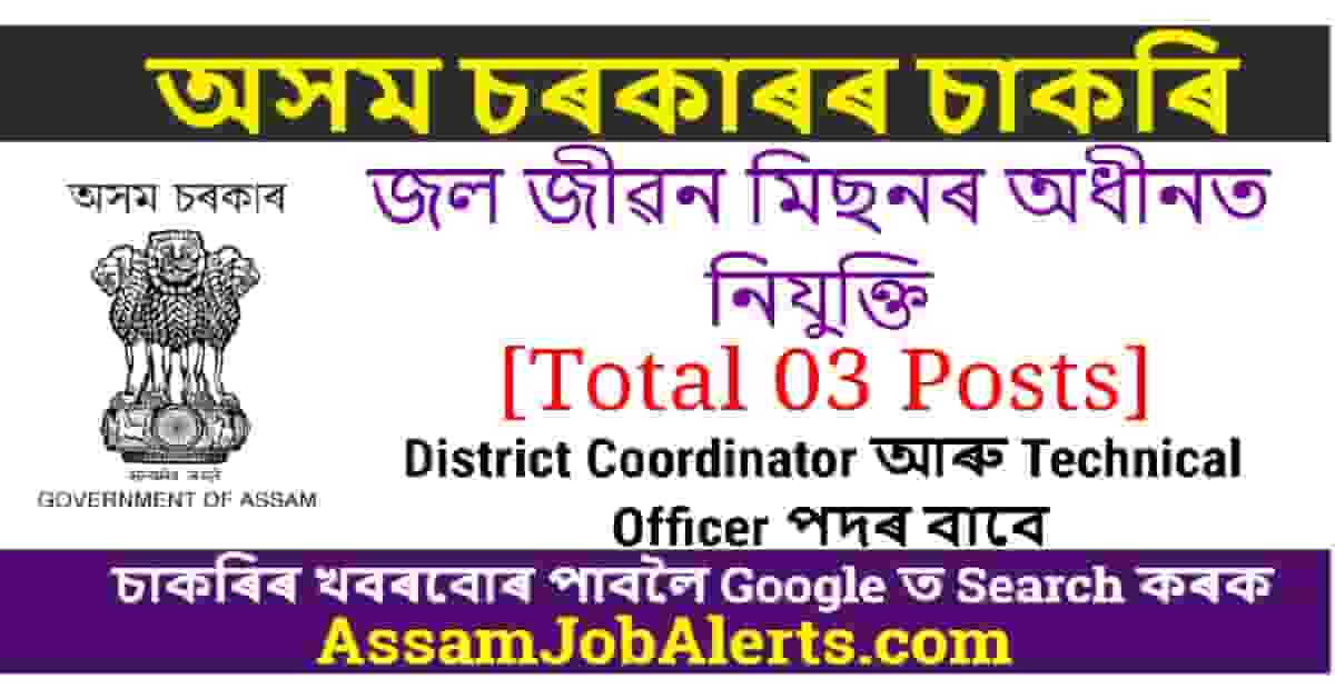 The District Mission Director, JJM cum Executive Engineer (PHE), South Salmara Mankachar Division, Hatsingimari has published a recruitment notification regarding recruitment of 03 District Coordinator and Technical Officer Posts. Interested candidates have to participate a Walk-in-Interview to fit up the following position. For more job and educational notification please check Assam Job Alert Regularly.