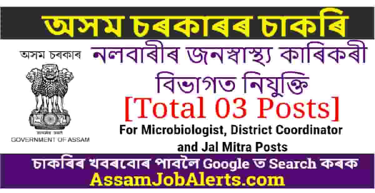 The Executive Engineer Public Health and Engineering(PHE) Department Nalbari Division has published a recruitment notification regarding recruitment of 03 Microbiologist, District Coordinator-IMIS and Jal Mitra Posts. To fill up the vacant posts on contractual basis(for a period of 11 months). The service may be extended based on performance appraisal of the incumbent from the date of joining(subject to the terms and conditions) under the establishment of O/o the Executive Engineer (PHE), Nalbari Division, Nalbari cum District Mission Director, Jal Jeevan Mission, Nalbari. Interested and eligible candidates may check the detail notification as given below. For more Assam Job Notifications Please Visit Assam Job Alert Regularly.