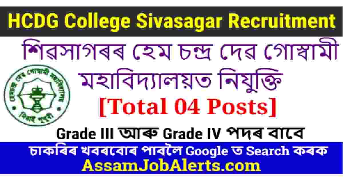Hem Chandra Dev Goswami (HCDG) College, Nitaipukhuri, Sivasagar has published a recruitment notification regarding recruitment of 04 Junior Assistant and Grade IV Posts. Interested candidates may check the detail notification and candidates have to apply offline with application form along with complete Bio-data and self-attested copies of all the testimonials for the vacant Posts of Grade III and Grade IV. For more Assam Job Notifications Please Visit Assam Job Alert Regularly.