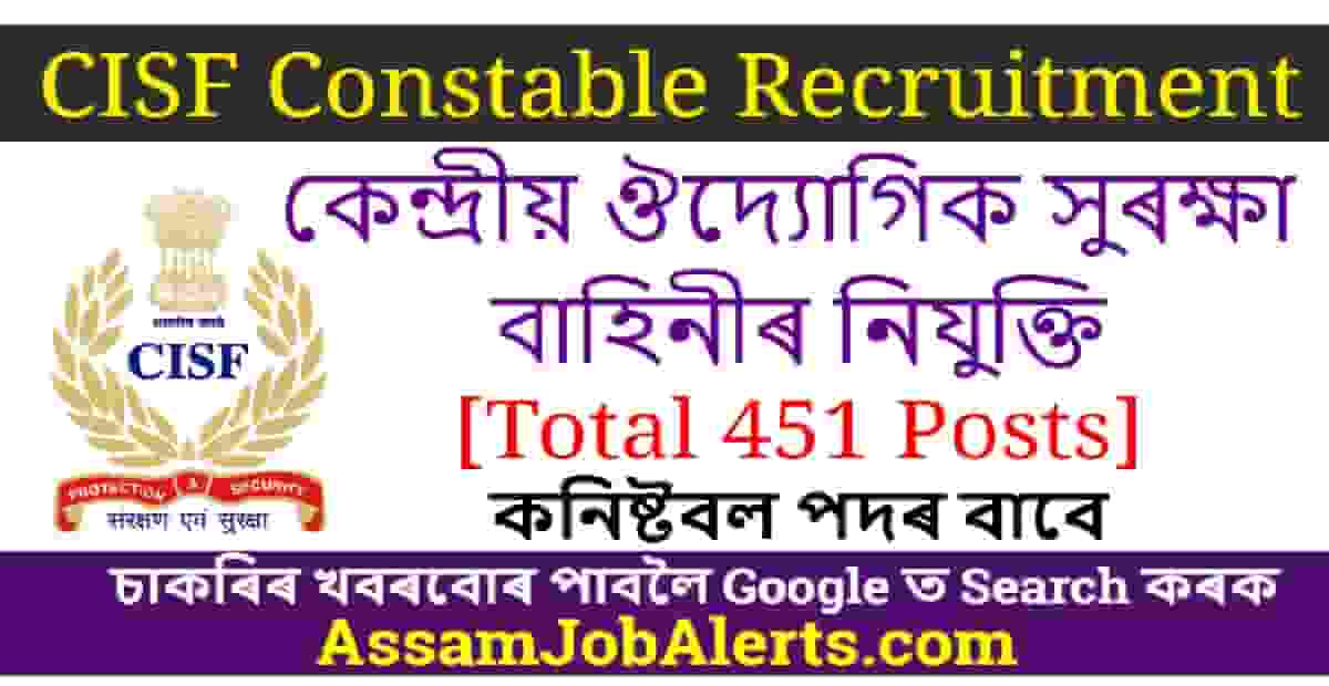 • CISF Constable Recruitment 2023 - For 451 Constable Posts - Assam Job Alert