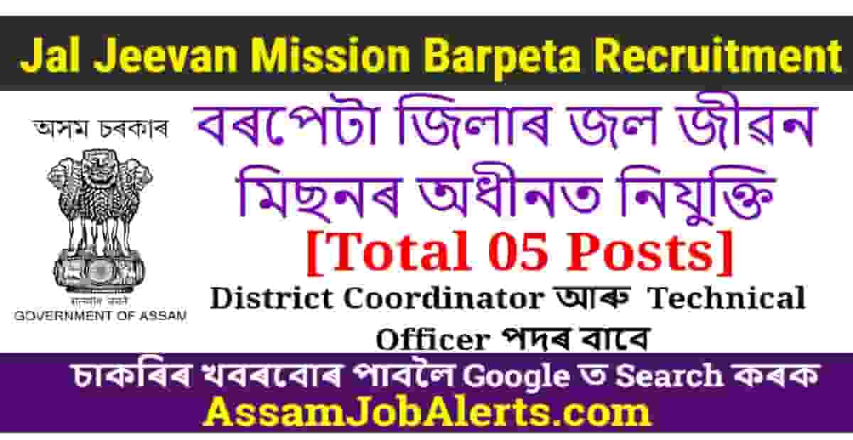 Jal Jeevan Mission Barpeta Recruitment – For 05 District Coordinator and Technical Officer Posts