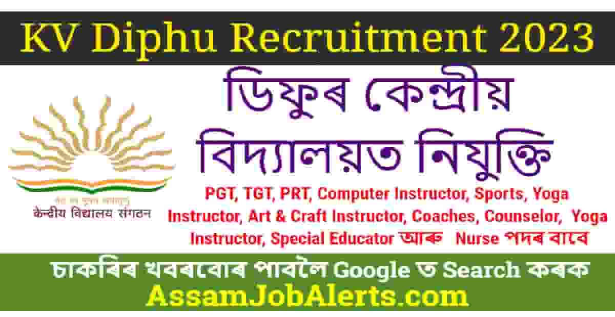 KV Diphu Recruitment – Kendriya Vidyalaya Diphu has published a recruitment notification regarding recruitment for various contractual posts. Interview for the post of PGT, TGT, PRT, Computer Instructor, Sports, Yoga Instructor, Art & Craft Instructor, Coaches, Counselor, Yoga Instructor, Special Educator & Nurse will be held at KV Diphu. Interested candidates may check the detail notification as given below. For more job and educational notification please check Assam Job Alert Regularly.