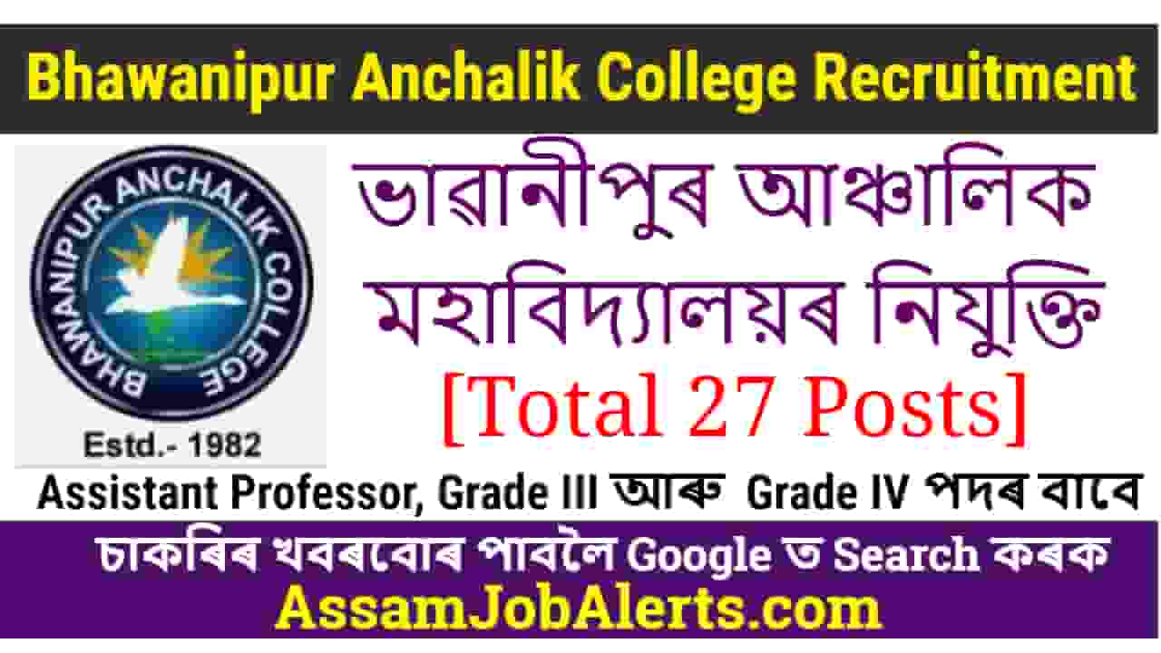 Bhawanipur Anchalik College Recruitment – For 27 Assistant Professor, Grade III & IV Posts