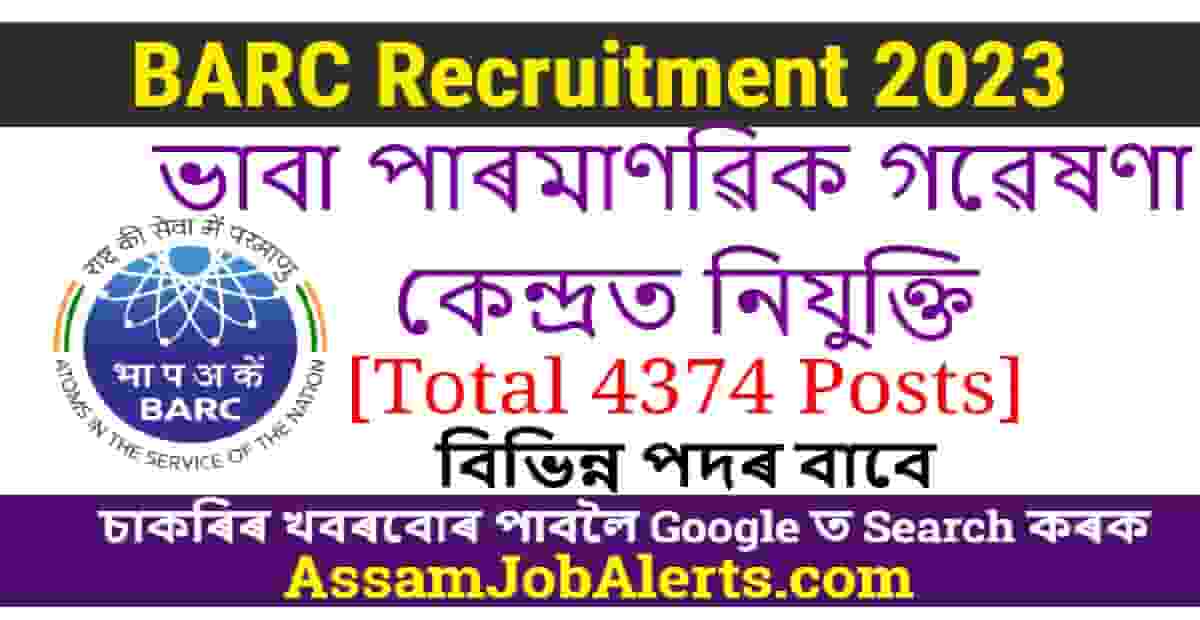 Bhabha Atomic Research Centre (BARC) has has published a recruitment notification for recruitment of 4374 Posts of Constituent Units of Department of Atomic Energy (DAE) through Direct Recruitment/Training Scheme. Interested candidates may check the detail notification as given below. For more Job notifications please visit Assam Job Alert regularly.