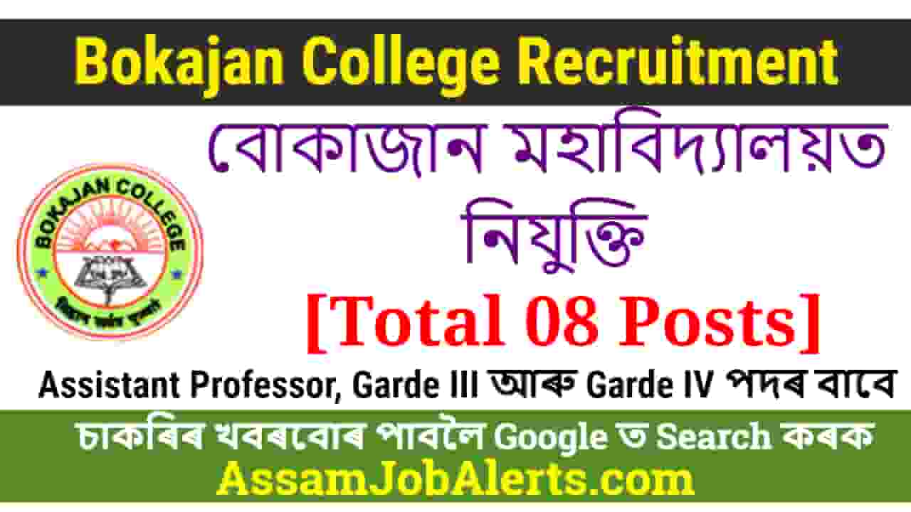 Bokajan College, Bokajan has published a recruitment notification regarding recruitment of 08 Assistant Professor, Grade III and Grade IV Posts. Interested candidates may check the detail notification as given below. For more Assam Job Notifications Please Visit Assam Job Alert Regularly.