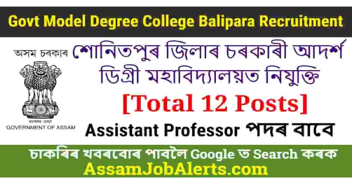 Govt Model Degree College, Balipara, Sonitpur has published a recruitment notification regarding recruitment of 12 Assistant Professor Posts in various departments. Interested candidates may check the detail notification given below. For more job and educational notification please check Assam Job Alert Regularly.