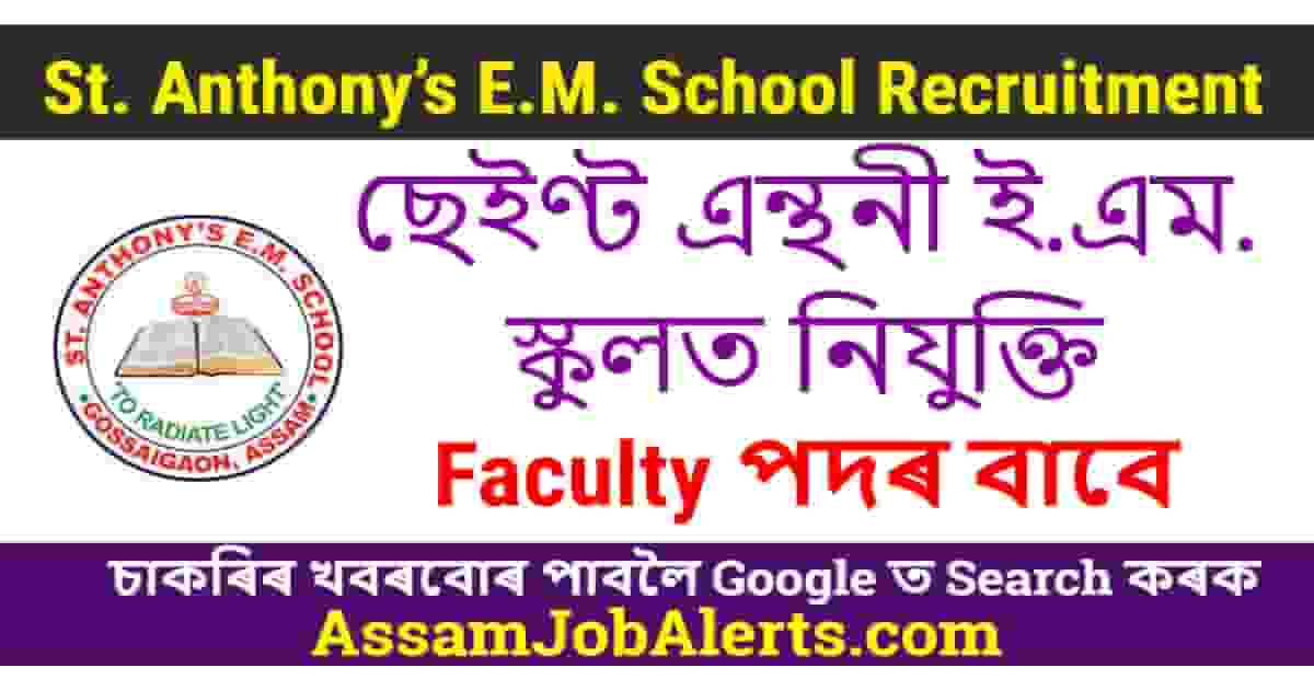 St. Anthony’s E.M. School Recruitment, Gossaigaon has published a recruitment notification regarding recruitment of 01 Faculty Posts for Hindi Subject. TSt. Anthony’s E.M. School, Gossaigaon is a religious minority educational institution managed by the diocese of Bongaigaon (headquarters) with the principles and methods of Catholic Schools throughout the world. Interested candidates may check the for the following positions. For more job and educational notification please check Assam Job Alert Regularly.