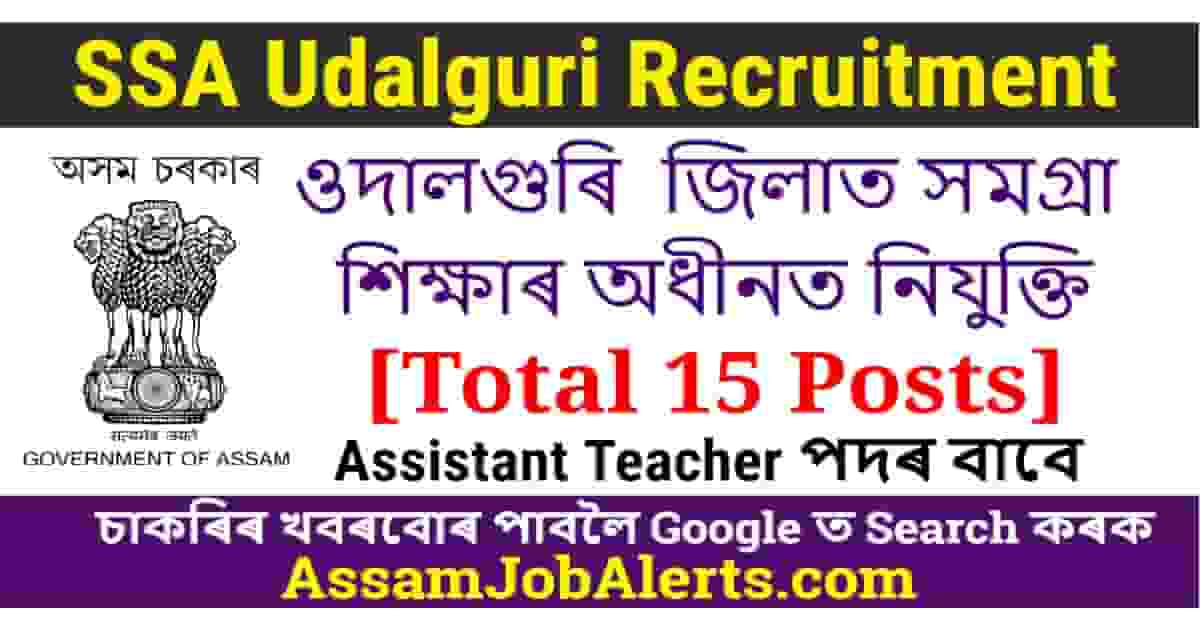 • SSA Udalguri Recruitment - For 15 Assistant Teacher Posts - Assam Job Alert