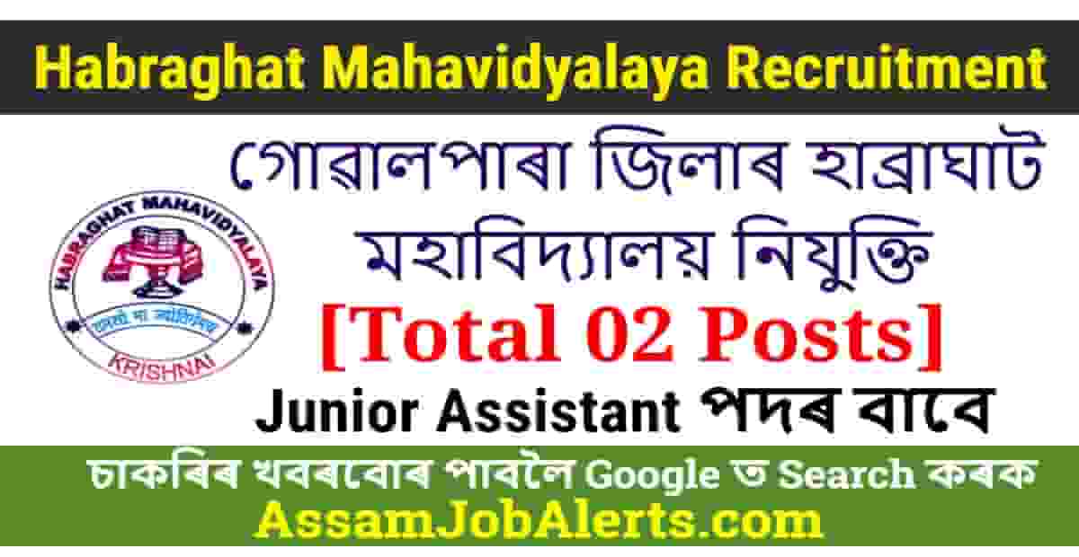 Habraghat Mahavidyalaya, Goalpara has published a recruitment notification regarding recruitment of 02 Junior Assistant Posts. Interested candidates may check the detail notification as given below. For more Assam Job Notifications Please Visit Assam Job Alert Regularly.