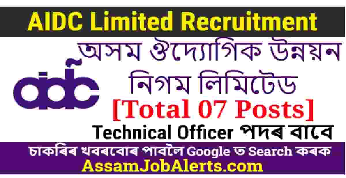 Assam Industrial Development Corporation Ltd. (AIDC Ltd) has published a recruitment notification regarding recruitment of 07 Technical Officer Posts in the O/o Assam Industrial Development Corporation Limited (A Govt. of Assam Undertaking), R. G. Baruah Road, Guwahati-24. Interested candidates may check the detail notification as given below. For more Job notifications please visit Assam Job Alert regularly.
