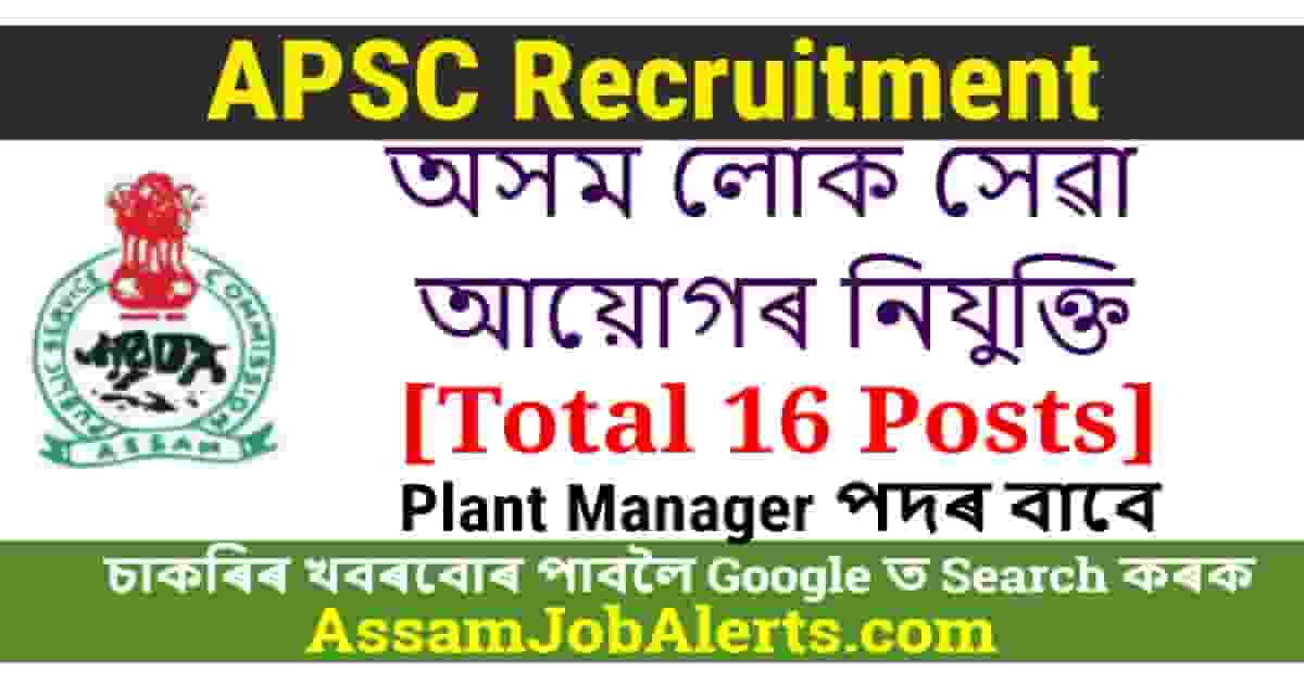 • APSC Recruitment 2024 - For 16 Plant Manager Posts - Assam Job Alert