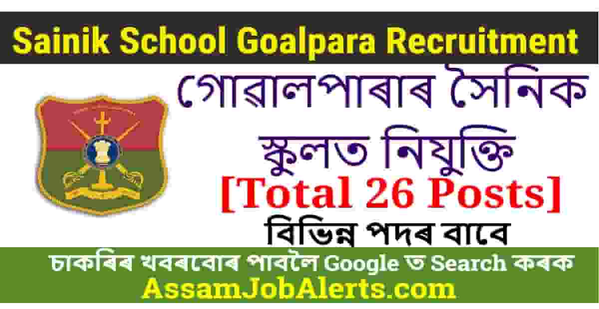 • Sainik School Goalpara Recruitment 2024 - For 26 Posts - Assam Job Alert