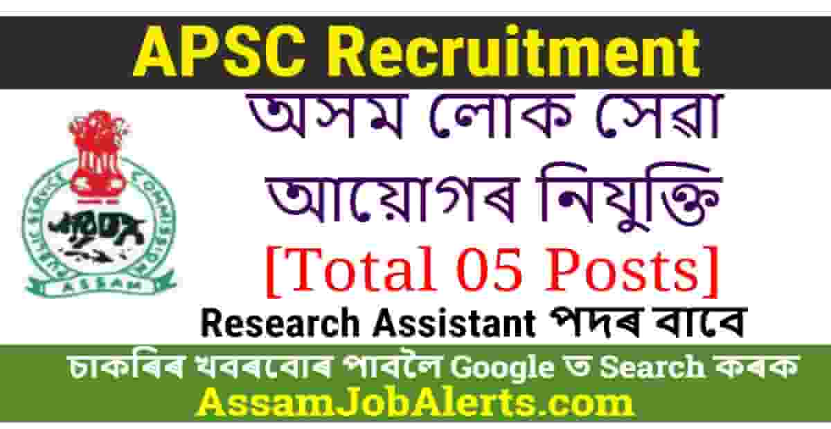 The Assam Public Service Commission(APSC) has published recruitment notifications regarding recruitment of 05 Research Assistant under Finance(Economics Affairs) Department, Assam. Interested candidates may check the detail notification as given below. For more Assam Job Notifications Please Visit Assam Job Alert Regularly.