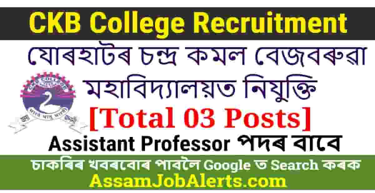 Chandra Kamal Bezbaruah College, Teok, Jorhat also known as CKB College Teok has published a recruitment notification regarding recruitment of 03 posts of Assistant Professor. Interested candidates may check the  for the following positions. For more job and educational notification please check Assam Job.