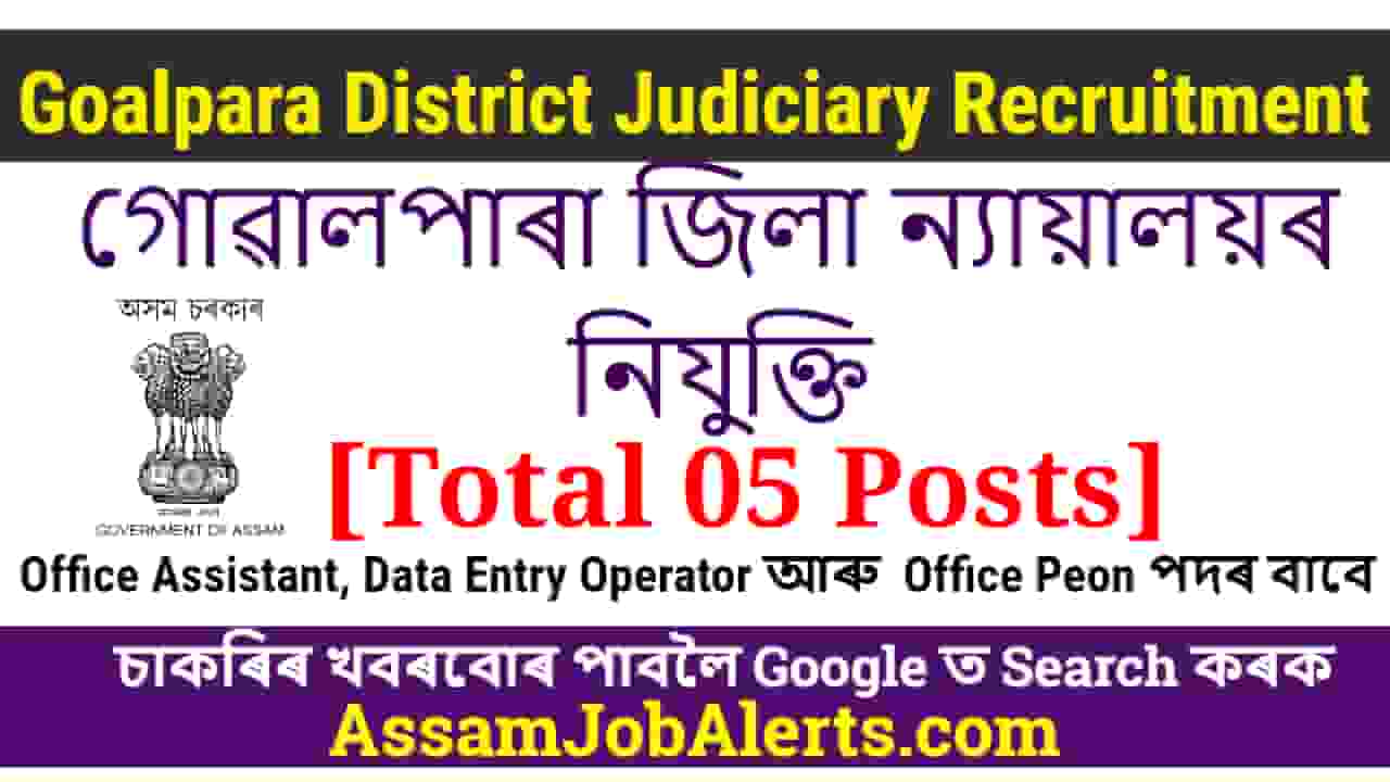 • Goalpara District Judiciary Recruitment - For 05 Assistant, DTO and Peon Posts - Assam Job Alert