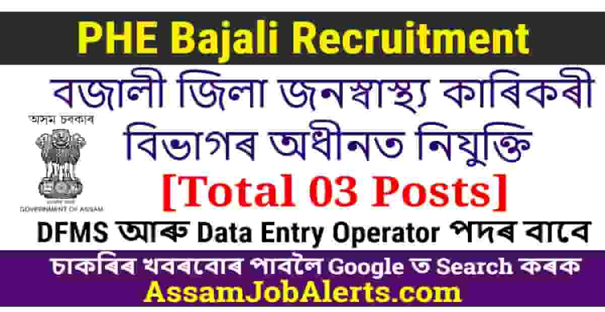 Executive Engineer (PHE) Bajali Division, Pathsala has published recruitment notifications regarding recruitment of 03 DFMS and DEO (Data Entry Operator) Posts in the O/o the EE (PHE) Cum DMD, JJM, Assam, Bajali PHE Division, Pathsala under Jal Jeevan Mission, DWSM, Bajali. Interested candidates may check the detail notification as given below. For more Assam Job Notifications Please Visit Assam Job Alert Regularly.