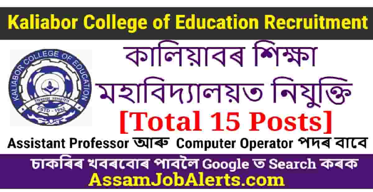 Kaliabor College of Education, Nagaon has published a recruitment notification regarding recruitment of 15 Assistant Professor and Computer Operator Posts. Interested candidates may check the for the following positions. For more job and educational notification please check Assam Job.