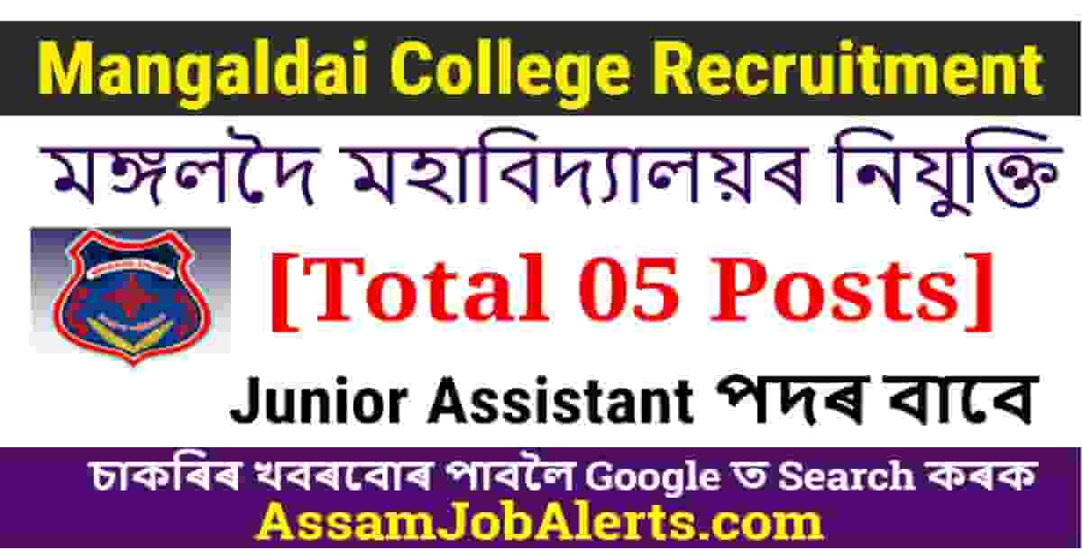 Mangaldai College, Darrang has published a recruitment notification regarding recruitment of 05 Grade III(Junior Assistant) Posts. Applications are invited along with Standard Form and self-attested copies of all the testimonials for recruitment of the vacant Posts of Junior Assistant. For more Assam Job Notifications Please Visit Assam Job Regularly.