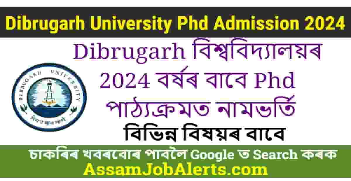 • Dibrugarh University Phd Admission 2024 - DURAT 2024 - Assam Job Alert