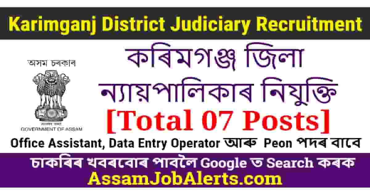 The Karimganj District Judiciary has published a recruitment notification regarding recruitment of 07 Office Assistant, Receptionist- Cum Data Entry Operator and Office Peon Posts under the District Legal Services Authority, Karimganj(DLSA, Karimganj ). Interested candidates may check the detail notification as given below. For more Assam Job Notifications Please Visit Assam Job Regularly.