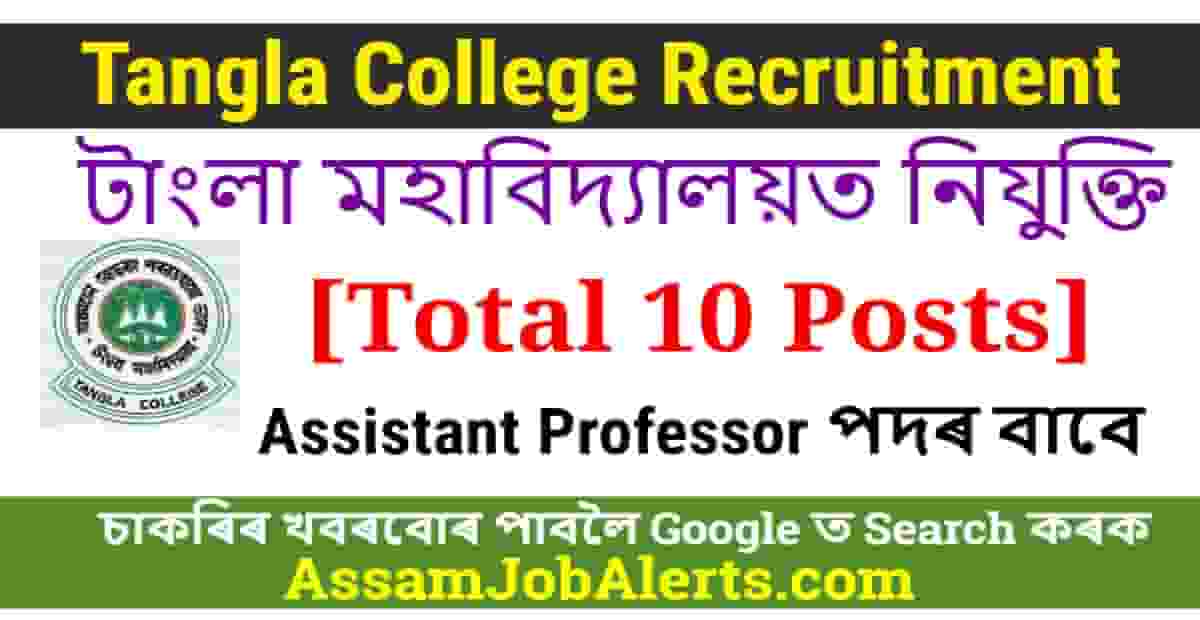 Tangla College, Udalguri, Assam has published a recruitment notification regarding recruitment of 10 Assistant Professor for various subjects. Interested candidates may check the for the following positions. For more job and educational notification please check Assam Job.