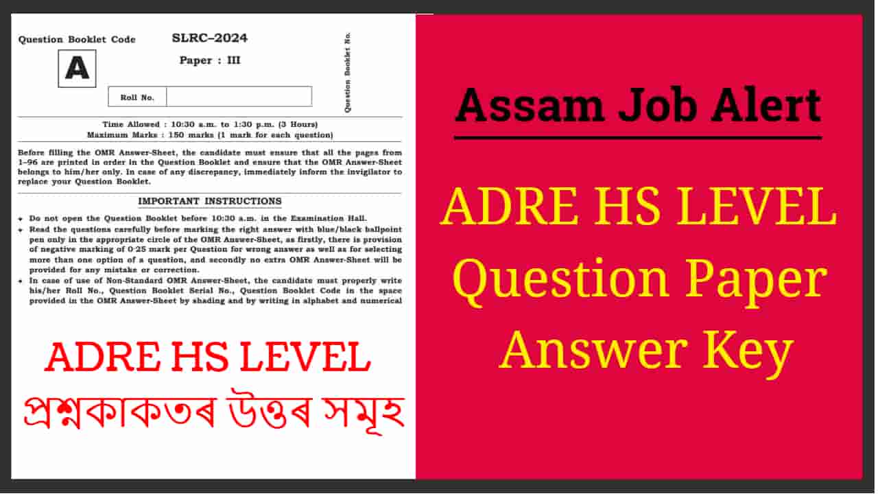 The Assam Direct Recruitment 2024 Question Paper Answer Key for HS Level  is available here. In this article the candidates of Assam Direct Recruitment Exam will be able find the question and answers of HS Level Exam of which was held on 15th September, 2024. The Grade III ADRE candidates will be able to find here the answer keys of the SET-A. Candidates who have the other SETs of ADRE Question Paper can check match their question answer accordingly. Through the evaluation ADRE candidates will be able to get the idea of marks scored.