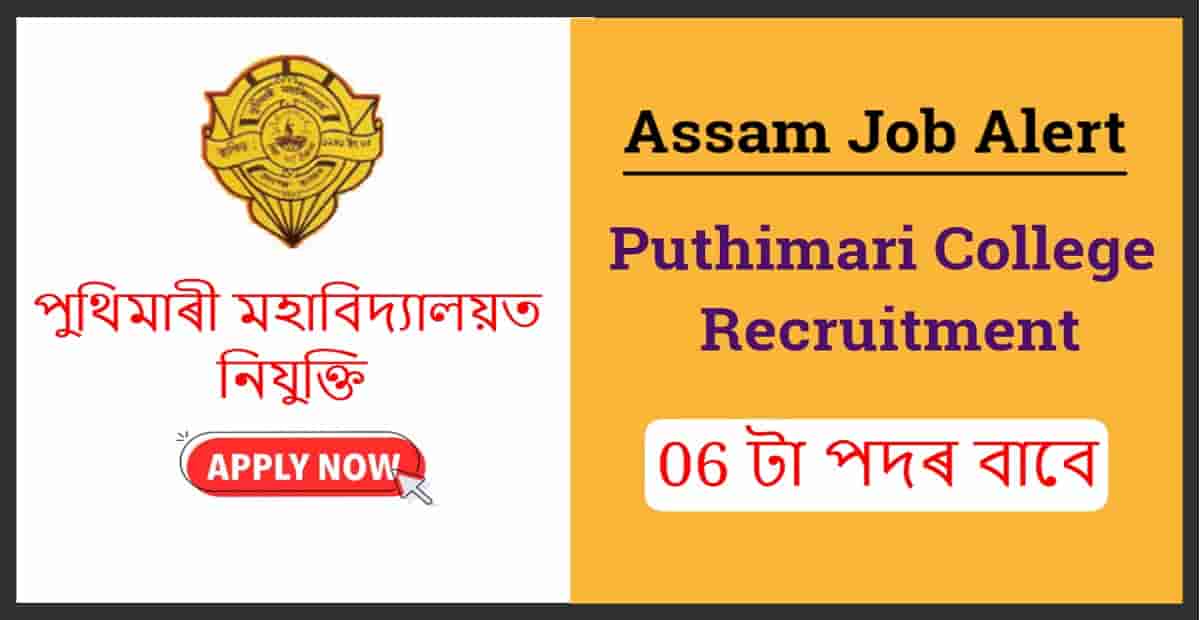 • Puthimari College Recruitment - For 06 Assistant Professor posts - Assam Job Alert