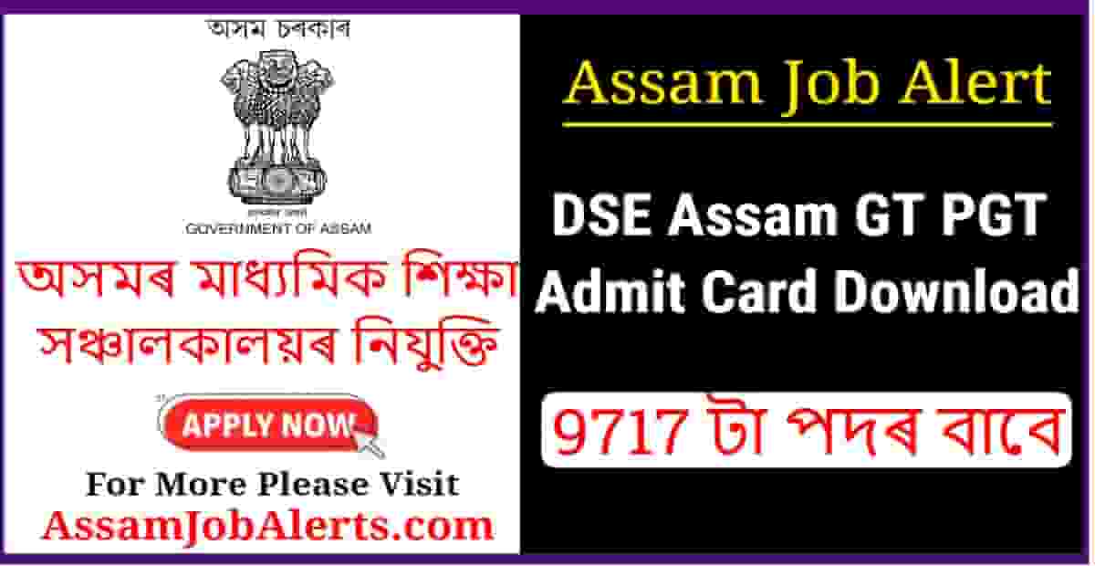 The admit Card for the Graduate Teacher(GT) and Post-Graduate Teacher (PGT) Recruitment Test is now available at the official website of the Directorate of Secondary Education, Assam. Candidates may download the admit cards from the link given below in the important link section.