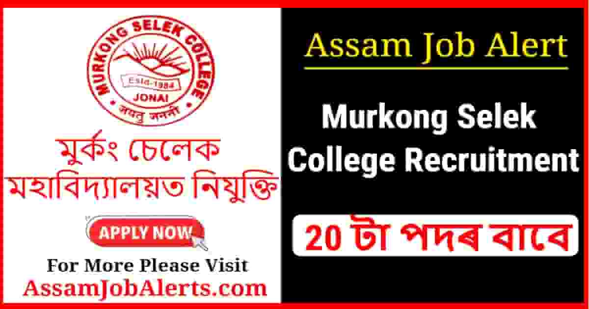 Murkong Selek College, Jonai, Dhemaji has published a recruitment notification regarding recruitment of 20 Assistant Professor, Laboratory Assistant and Laboratory Berar Posts. Interested candidates may check the for the following positions. For more job and educational notification please check Assam Job.