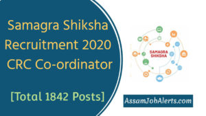 Samagra Shiksha Assam Recruitment 2020 CRC Co-ordinator [Total 1842 Posts]